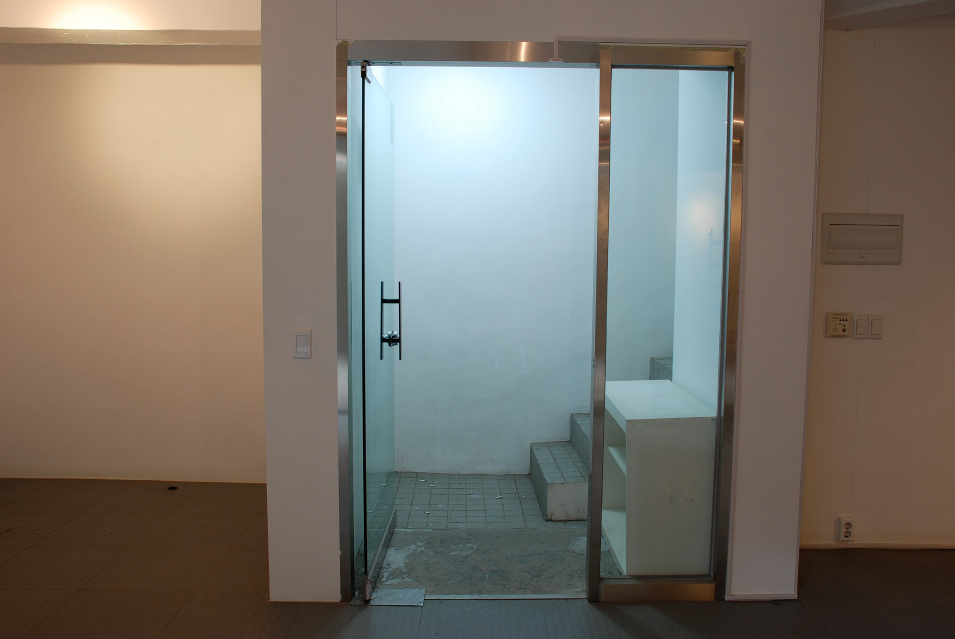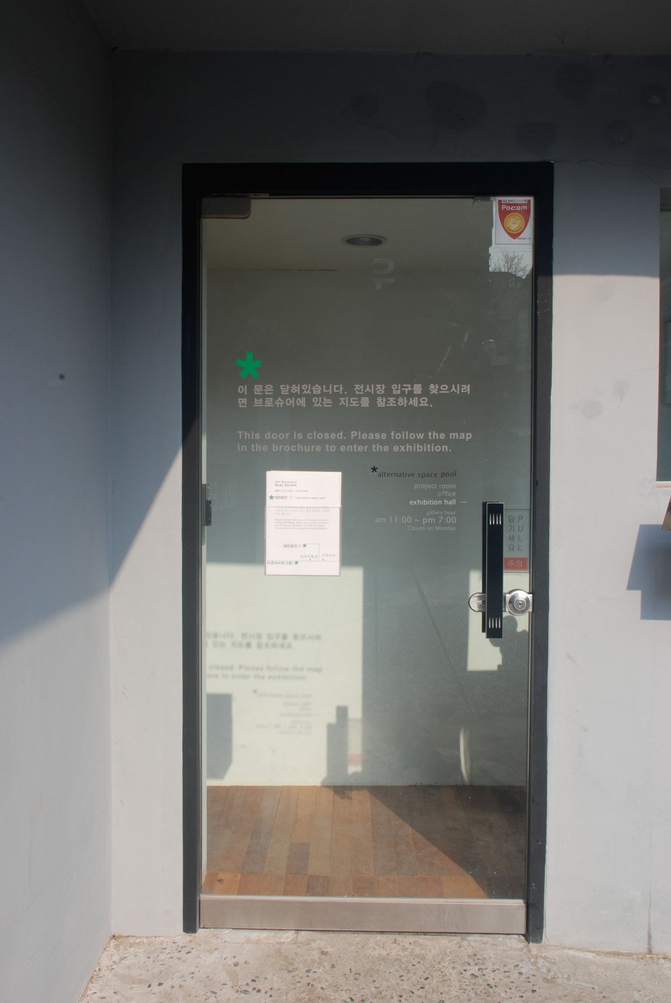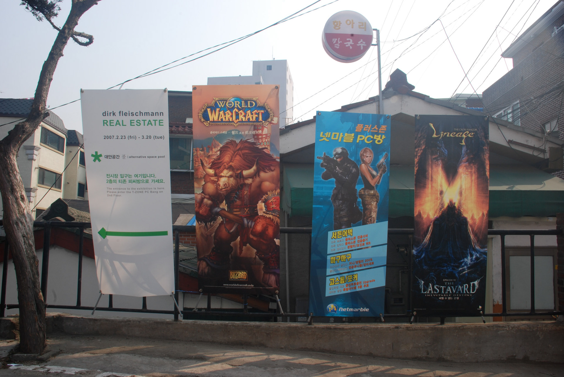 I used the building tools of Second Life (SL), an internet-based virtual world, to create an exact virtual replica of the Art Space Pool exhibition space. The concept of the project was to sell this ‘virtual real estate’ to Pool. The exhibition space was locked during the exhibition period and there was no art object on display. Instead the exhibition visitors were directed to the nearby PC Bang (Korean Internet Cafe), where they could log in to SL and explore the virtual replica of Art Space Pool. For the exhibition opening the complete PC Bang was rented so that 45 exhibition visitors could log in at the same time.