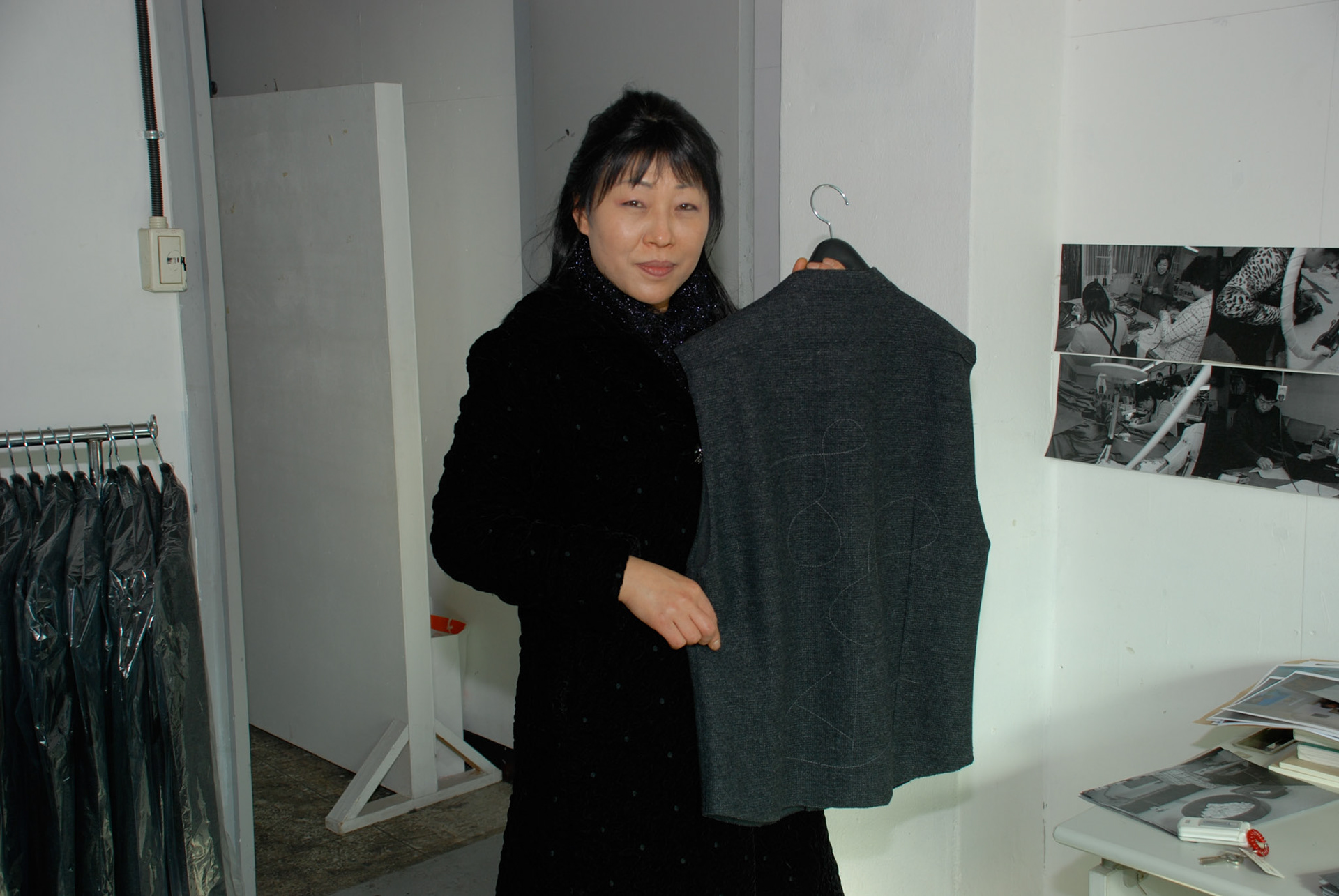 I designed a set of shirt and vest. The shape of collar, length and shoulders are identical. On the back of each garment is an unique decorative stitching. The variations were improvised by the workers who manufactured the items. The project was realized in collaboration with the Korean fashion brand SSamzie Co. Ltd and produced at Jin Jin Factory, Seoul.