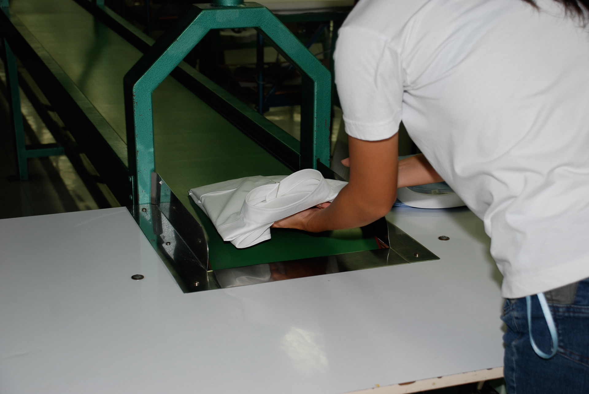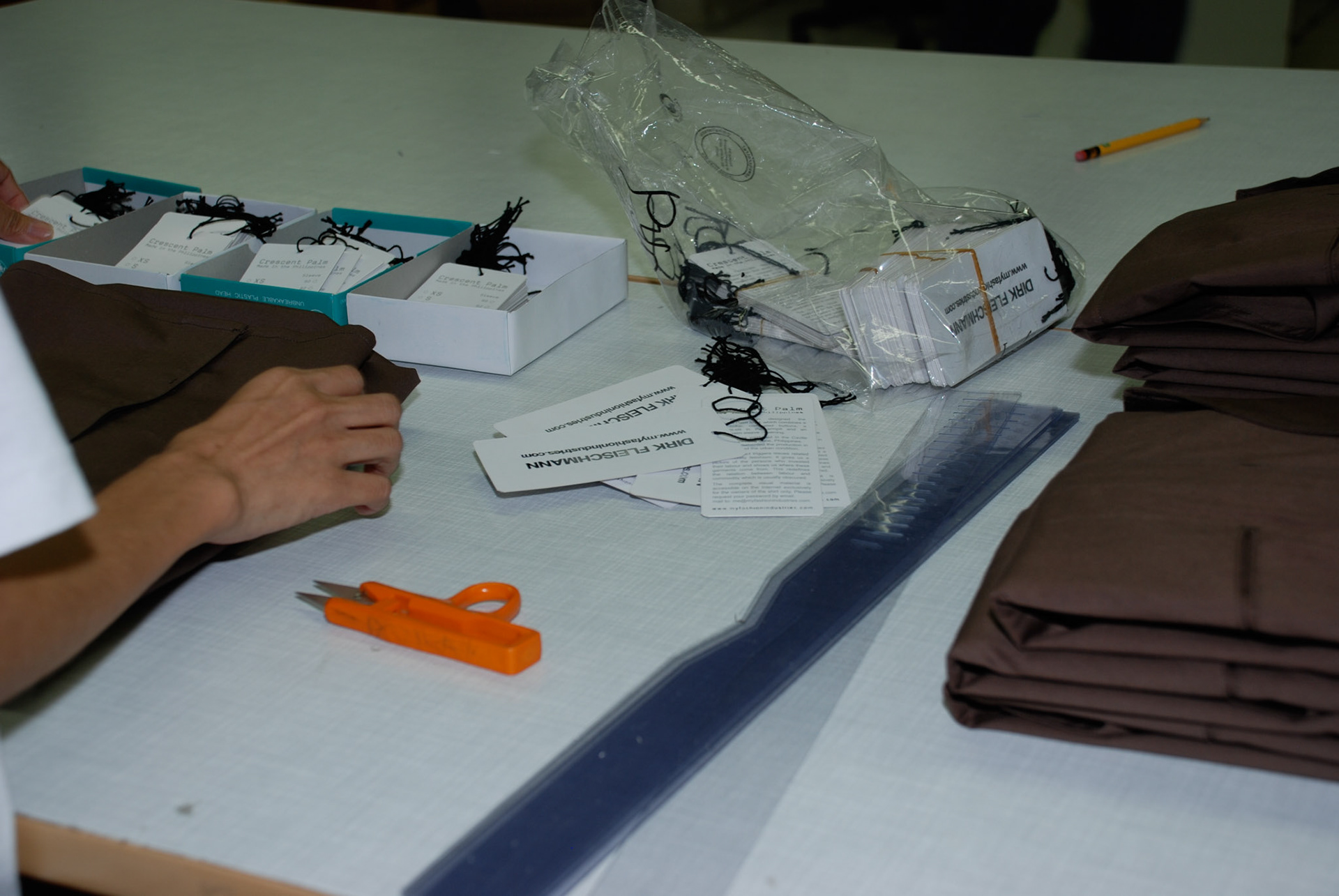 “Made in the Philippines” highlights issues of commodity fetishism by redefining the oft-obscured relationship between labour and commodity. I attempted to make the production process transparent and relate it to wider trade perspectives within a global context. The shirts were manufactured in a free trade zone, located in Rosario, Cavite. In April 2008, I spent a month there to document the production of the shirts in the factory and the living conditions of the laborers with 36 videos. It is a portrait of the workers, the factory and the urban situation in relation to the free trade zone, ten years after Naomi Klein researched Rosario for her book NO LOGO. Fleischmann revisited all the sites and people in Rosario that appear in NO LOGO. You may watch interviews with Cecile Tuico from the Workers Assistance Center or Mayor Nonong Ricafrente, referenced in the “The Unbearable Lightness of Cavite” chapter of Klein’s book.