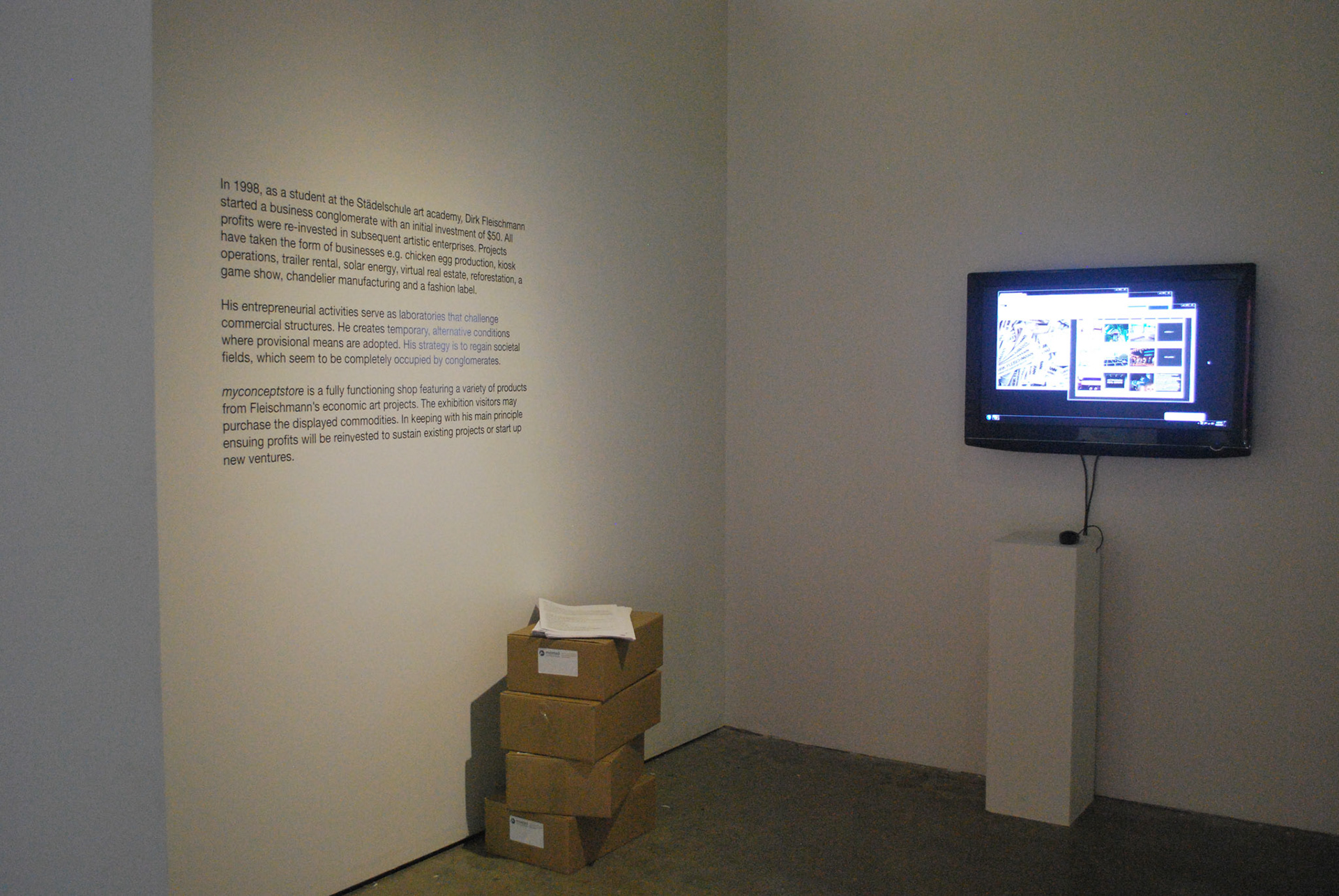 myconceptstore is a shop displaying a variety of products that I have addressed through my economic art projects for the past decade. The exhibition visitors may purchase the displayed commodities. In keeping with my main principle, ensuing profits will be reinvested to sustain existing projects.