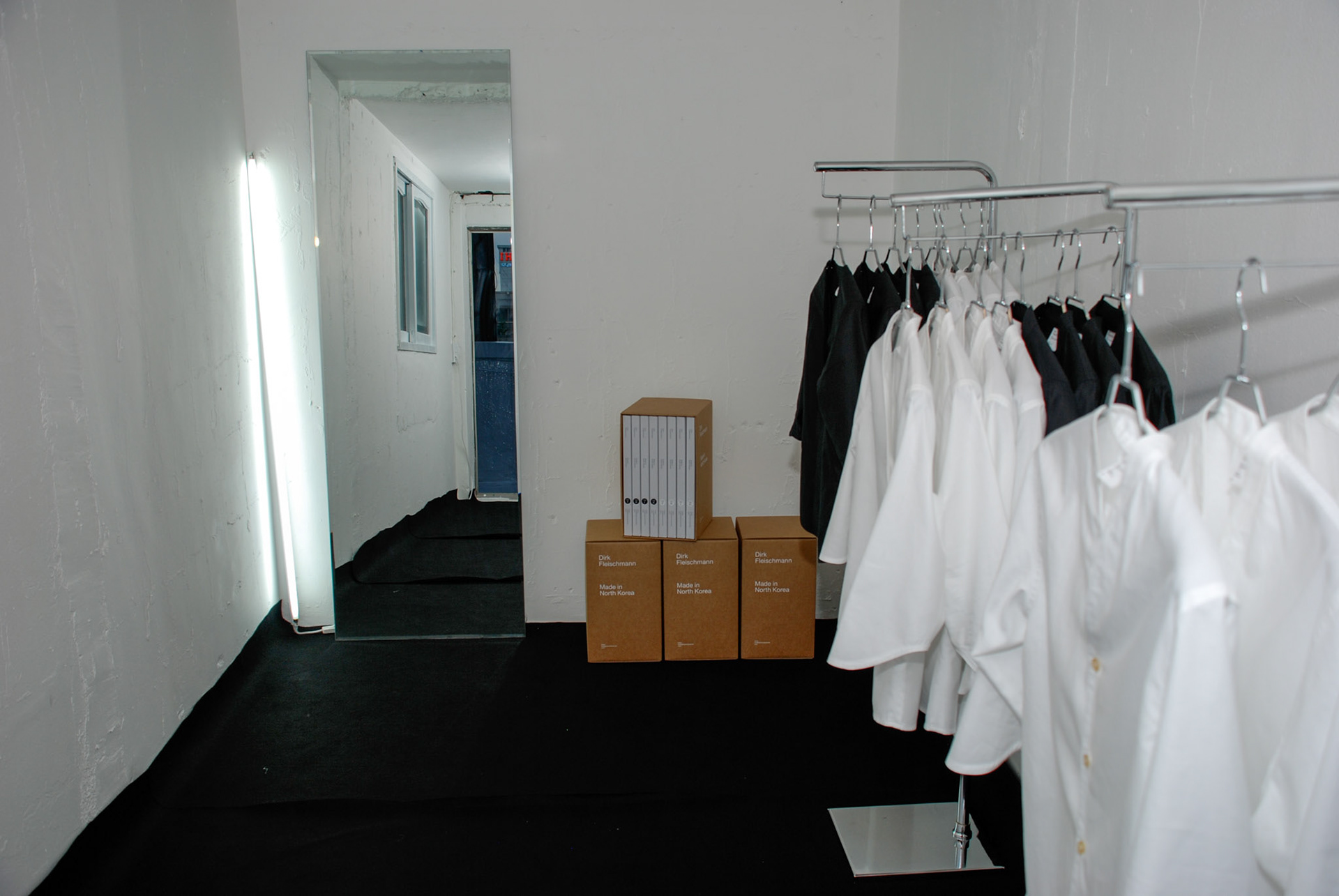 myflagshipstore was located on the roof top of the apartment building in Seoul, where I live. The Made in North Korea shirts were on display. I refused to exhibit the shirts in a regular art exhibition context to avoid fetishizing them as art objects. Therefore I organised my own non-institutional presentation format as a self-directed guerrilla pop up store.