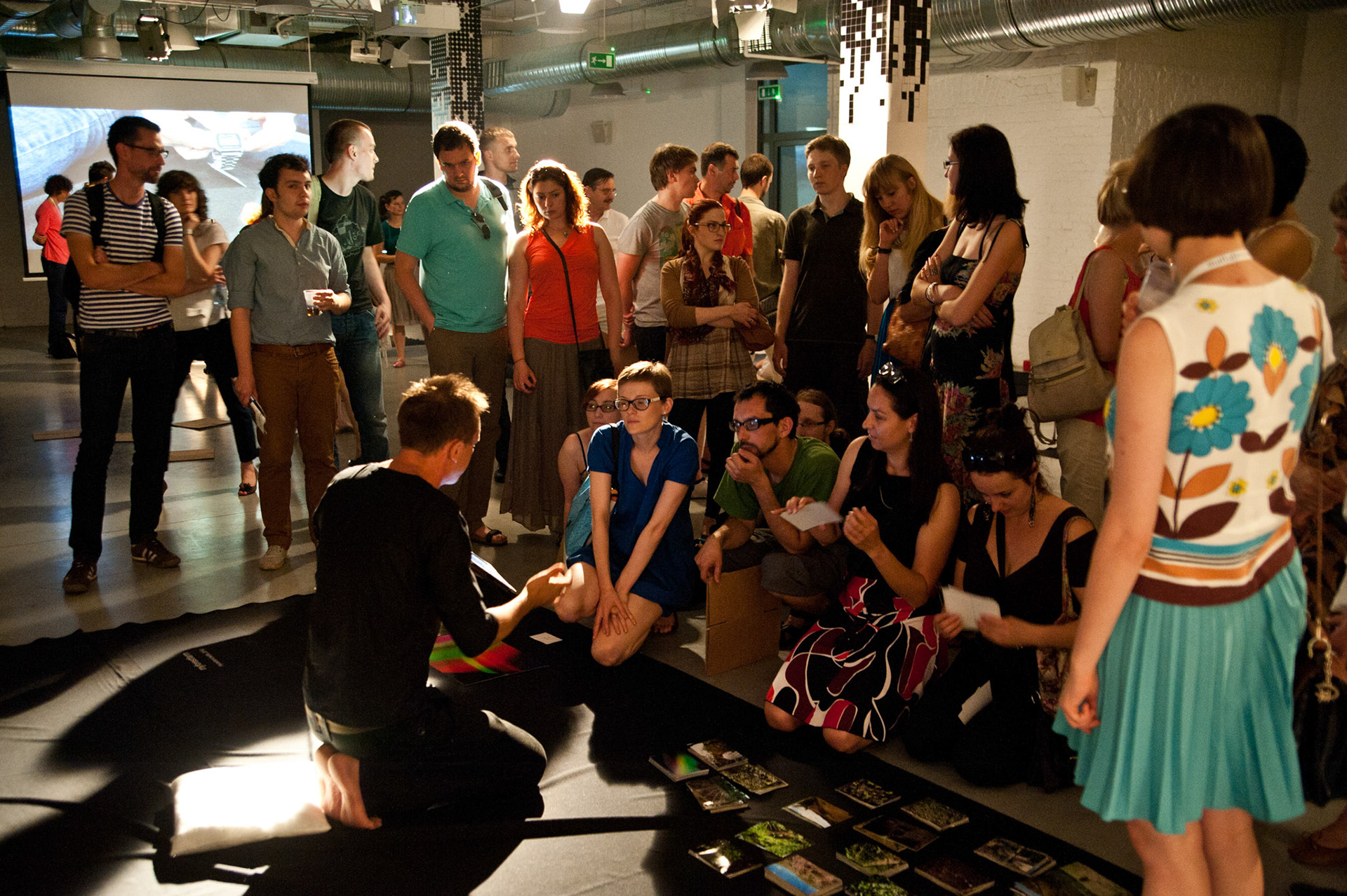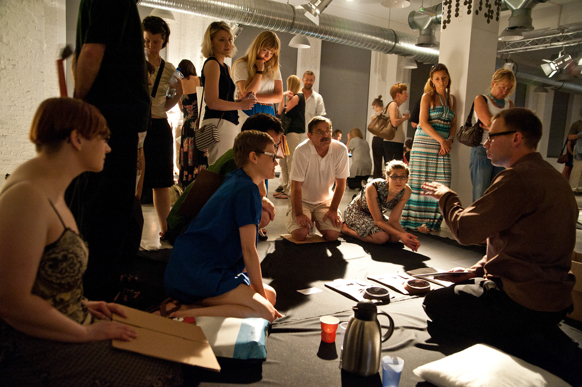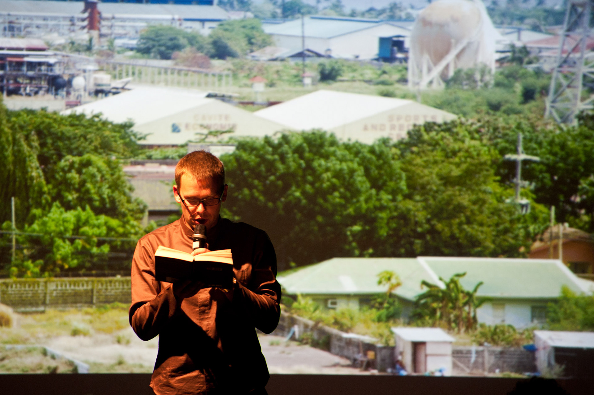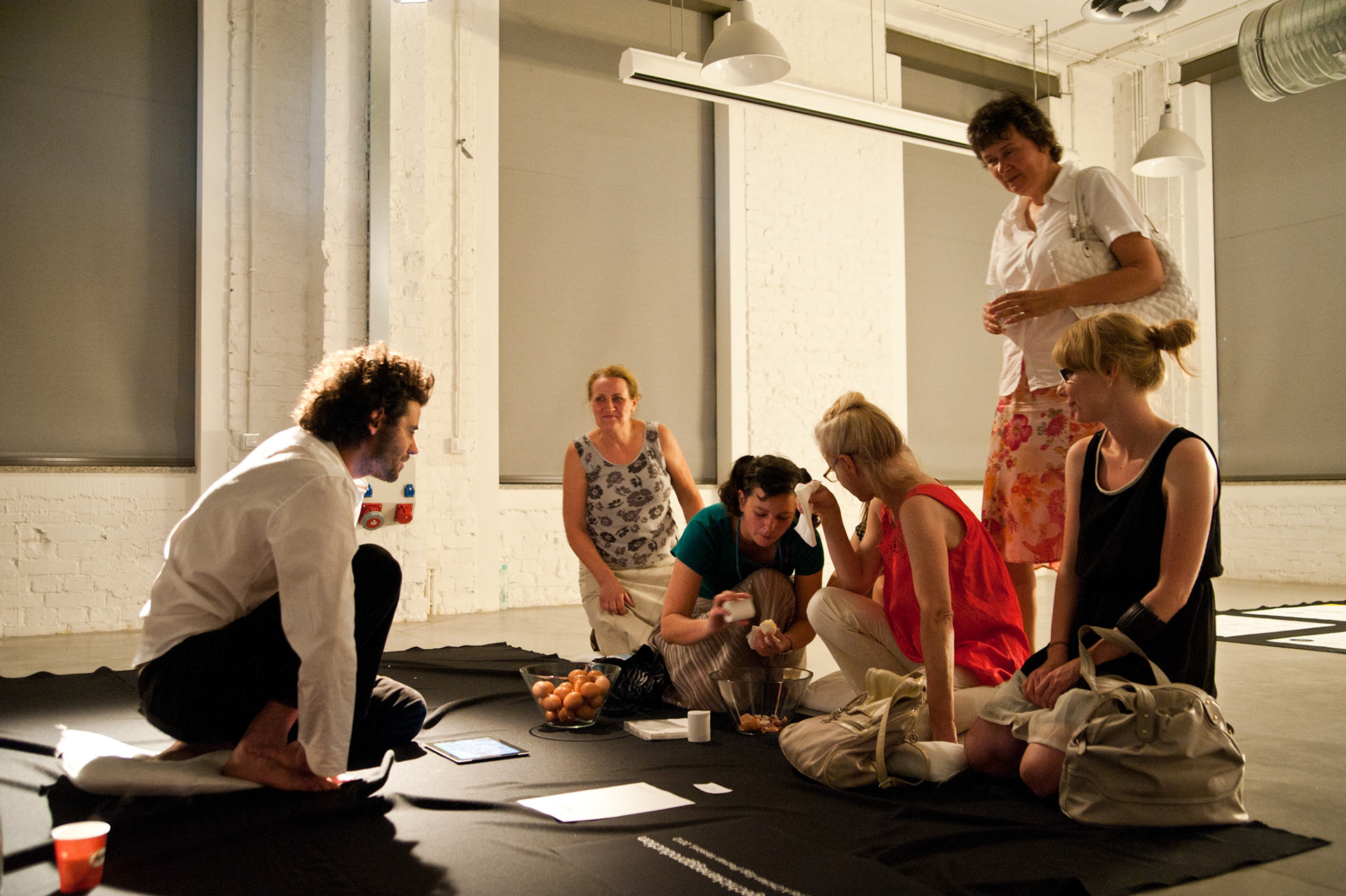 mysaleshow is structured like a flea market. The audience may stroll and communicate with the artist and the actors. Fleischmann offers products that he produced with his business art projects, such as chocolate, chicken eggs, lamps, watches, carbon credits and the Malta Festival promotion shirts. This variety is as schizophrenic as what we know, but never understood from other multinational, diversified business conglomerates. Fleischmann acts out this schizophrenia together with eight alter egos. Each of them represents another business/product. They will take the audience on a journey that starts with a herb tea from Fleischmann's hometown and ends in a special economic zone on North Korean territory where he designed and produced the Malta Festival shirt. His personal artistic micro-narrative tells a capitalist fairy tail of success. While others fly high, Fleischmann's project is like a low-level flight, where the grounds of our capitalist system remain in sight.