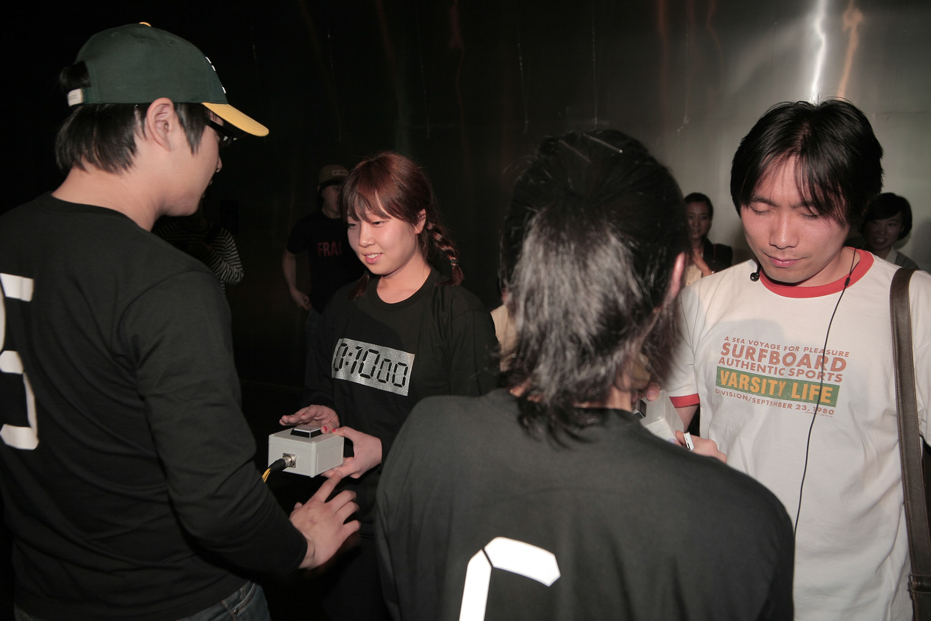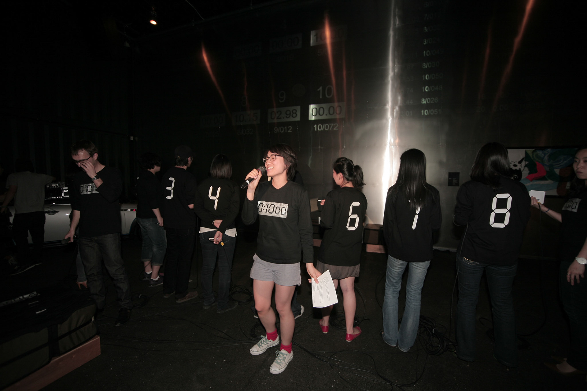 mystopshow is a collective game show. The game is easily comprehended. The player attempts to stop a certain time period (e.g. 10:00 seconds) as precisely as possible with a regular stop watch, without seeing the display. mystopshow is an ongoing project in several variations, which are specifically developed for different situations.
