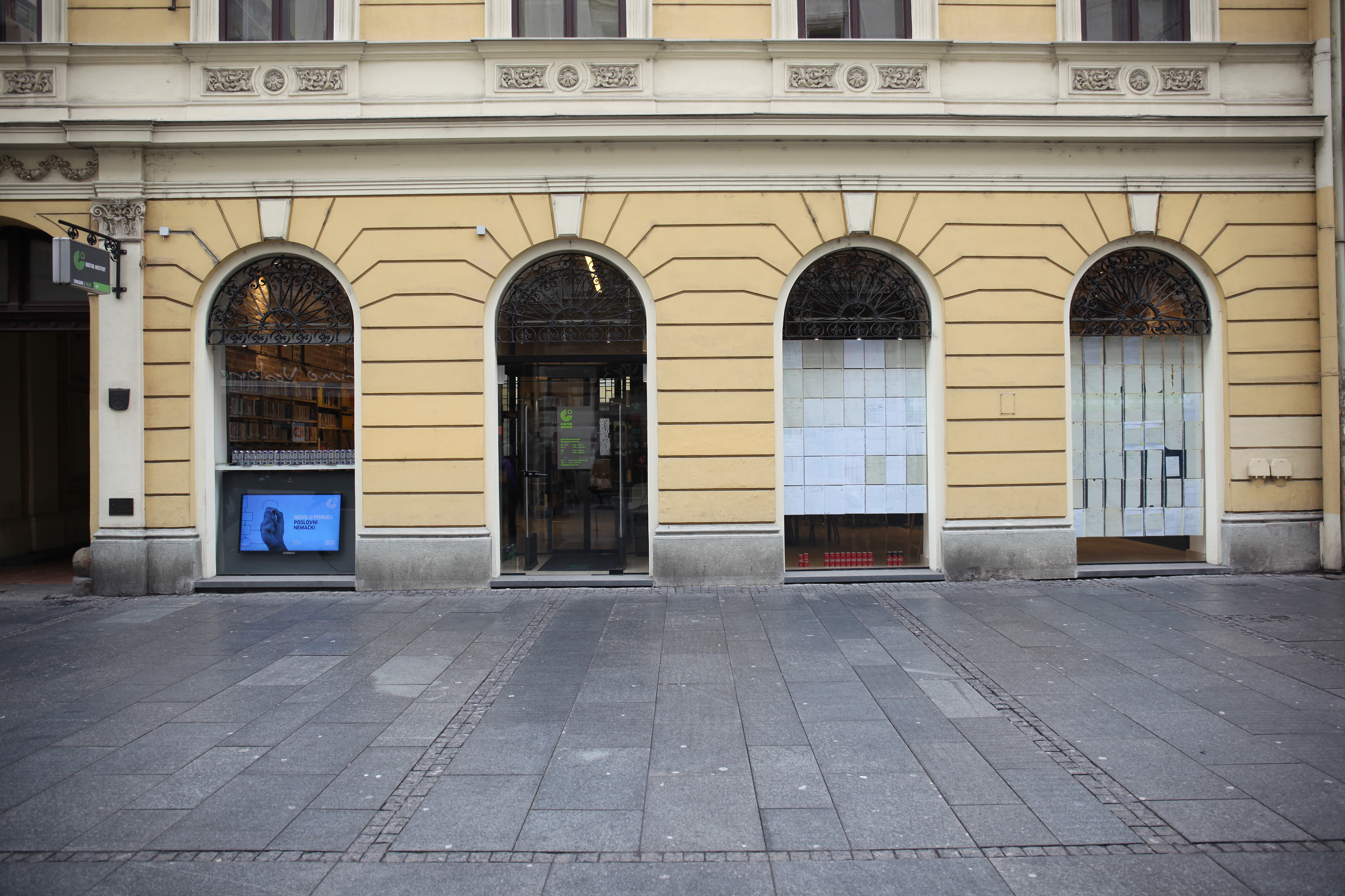 This overview exhibition consisted of archival material from the mykiosk project, a material intervention in the library of the Gothe Institute and the window front as well as an expansive lecture series about the main projects in the two decades of myconglomerate.